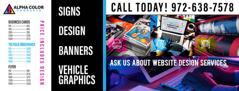 Alpha Color Concepts are a well-known Graphic Design and Print company that specializes in digital and physical marketing. Alpha Color Concepts is a renowned graphic design company that is on a quest to accomplish its comprehensive vision. Over the years, they have served several businesses in DFW via their high-quality print and graphic design services.